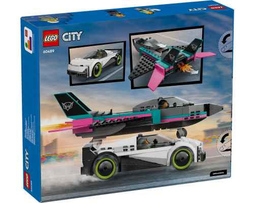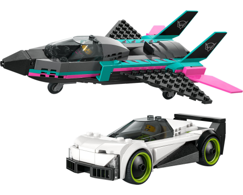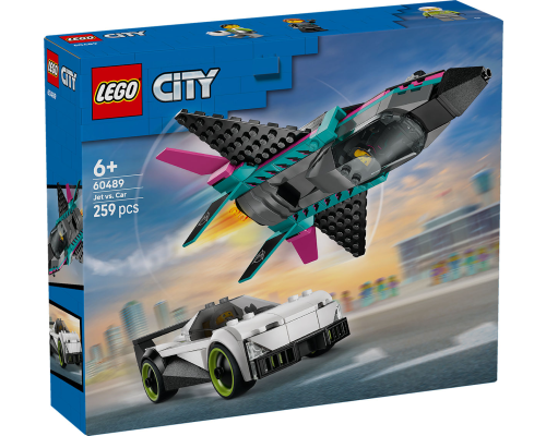 Deze LEGO City Straalvliegtuig vs. sportauto bouwset voor kinderen vanaf 6 jaar bevat een supercar en een supersonisch straalvliegtuig, plus minifiguren van een piloot en een coureur voor urenlang raceplezier.