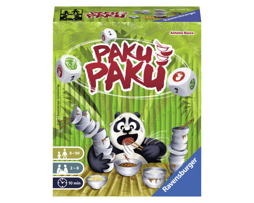 Het dobbelspel voor serviesacrobaten: Alleen degene die snel dobbelt en goed stapelt, kan dit razendsnelle dobbelspel winnen! Voor 2 – 8 hongerige panda´s.