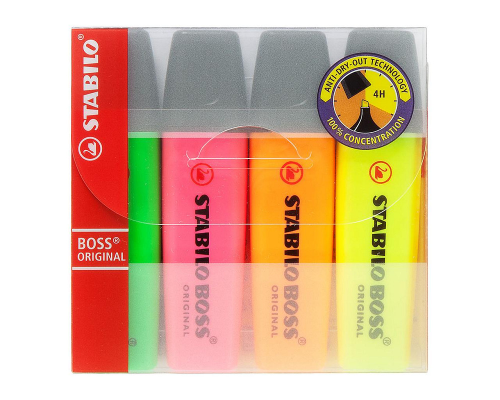 Europa's nummer 1 highlighter! De helderheid van de negen kleuren en de levensduur van de STABILO BOSS ORIGINAL zijn al 40 jaar legendarisch.