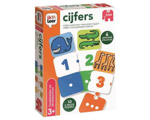 Met 'ik leer cijfers' leren kinderen spelenderwijs cijfers herkennen, tellen, hoeveelheden ordenen en verbanden leggen. Leg de dierenreeks van klein n