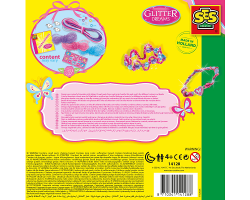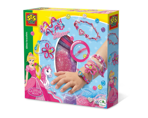 Meiden opgelet! SES heeft een nieuwe set om glitterarmbanden te maken! Met glitter draden van gaas en chenille ontwerp je helemaal zelf de mooiste armbanden. Je kunt het gaasdraad en de chenille op allerlei verschillende manier gebruiken. Draaien, vlechte