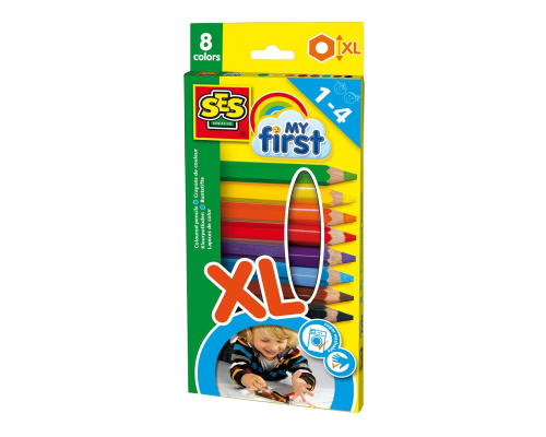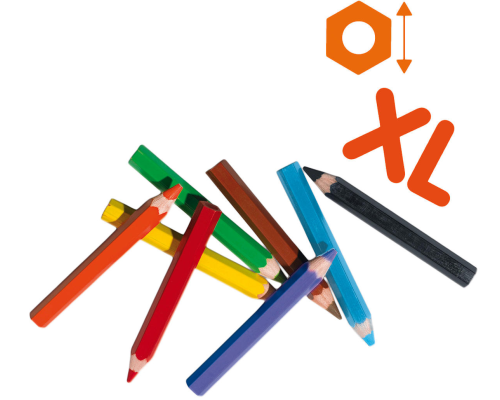 8 korte, dikke potloden in vrolijke kleuren. Eenvoudig om mee te tekenen en te kleur