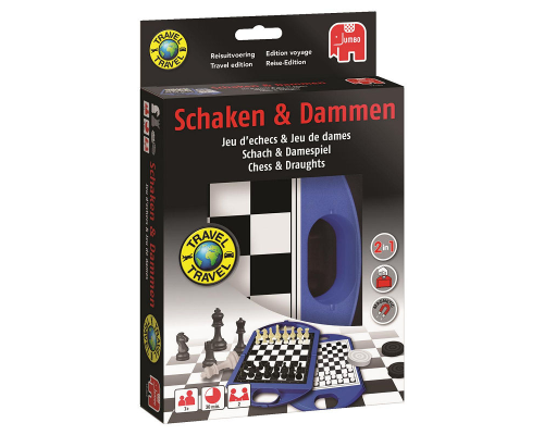 Twee spellen in een!! De ene kant heeft een schaakbord, draai het om en je kunt dammen! Reiseditie.