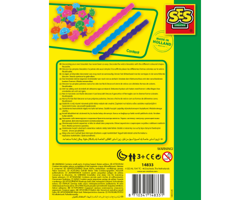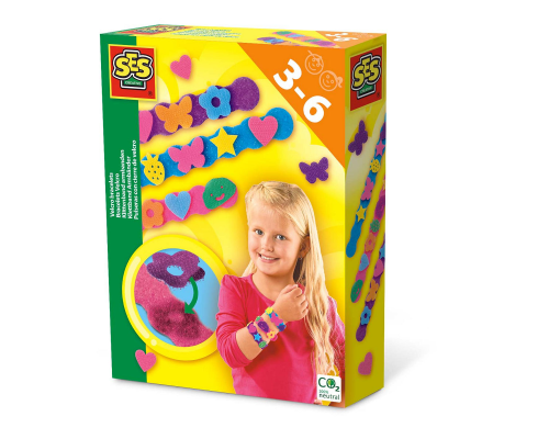 Je eigen armbanden decoreren was nog nooit zo eenvoudig. Deze set van SES Is speciaal voor kinderen vanaf 3 jaar om eenvoudig hele mooie armbanden te maken. Versier het klittenband met de vormpjes in de verschillende kleuren. Je kunt het steeds opnieuw ge