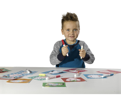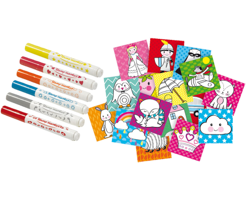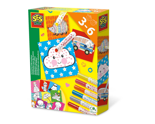 Zin in een leuke knutselactiviteit met je kleuter? Ga stempelen met stiften, een leuke set van SES! Versier de bedrukte vellen met de vrolijke stempelstiften. De 6 kleuren stiften hebben elk een andere stempel. Het resultaat is altijd super!