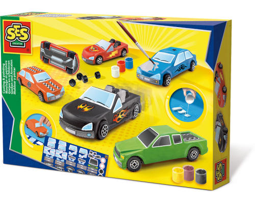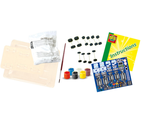 Met deze set van SES maak je stoere auto's van gips die echt kunnen rijden! Giet het gips in de mal, voeg de wielen toe en laat drogen. Vervolgens kun je de auto's schilderen in stoere kleuren die jij leuk vindt. Voeg stickers toe om ze helemaal af te mak