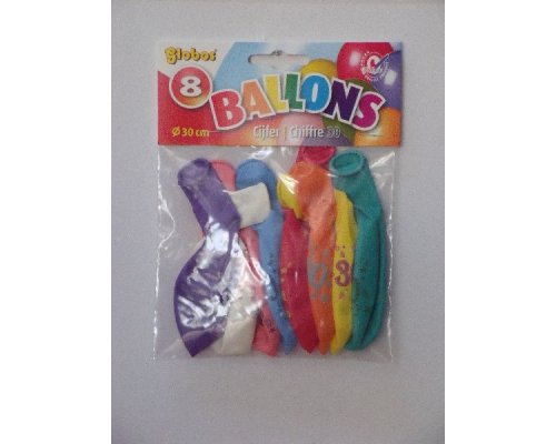 Ballonnen cijfer 30 no. 12 eenzijdig 8 stuks