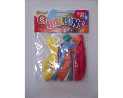 Ballonnen cijfer 5 no. 12 eenzijdig met 8 stuks