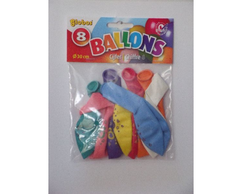 Ballonnen cijfer 6 no. 12 eenzijdig met 8 stuks