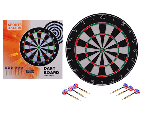 Sports Active Dartbord 45x2 cm met 6 darts in doos