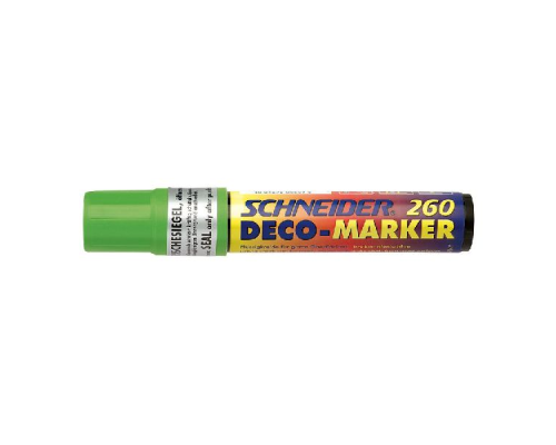 Krijt- of decomarker voor alle gladde oppervlakken, bijv. op schoolborden en op ramen van etalages in de detailhandel, boetieks, reisbureaus, gastronomie en priva©-gebruik voor bijv. bont gedecoreerde ramen etc. Het dekkende vloeibare krijt is vochtig afw