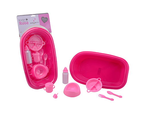 Babybad met bijbehorende accesoires. Babies willen graag in bad en vinden het leuk om met badspeeltjes te spelen. Met dit speelgoed zullen zij zich dus goed vermaken en niet eens nat worden!