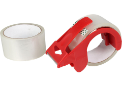 Plakband afrolapparaat, tafelmodel B1. Kunststof, stabiele voet met antislip. Geschikt voor tapes tot 19 mm breedte en transport in schooletui en om verwondingen te voorkomen.