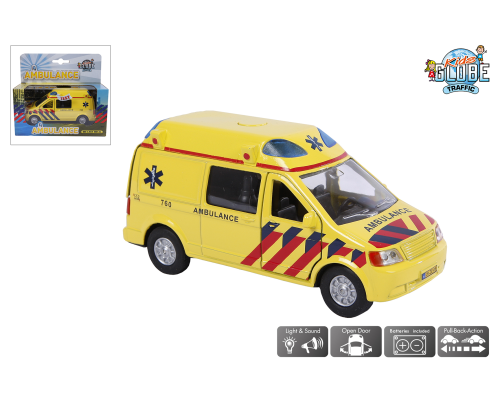 Kids Globe Ambulance Die Cast pull back met L/G