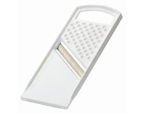 Klein en handig met dubbelzijdig snijmes en met kroonrooster voor kaas, specerijen en fruit