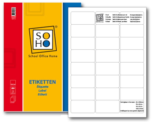 SOHO Etiketten A4 64x33,8mm 10 vel a 24 stuks
