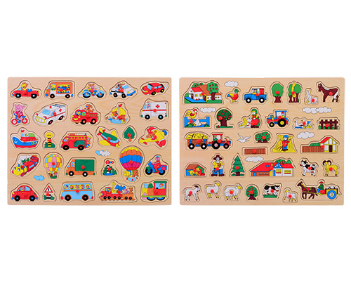 Houten knopjespuzzel +/- 45x35cm 2 assorti