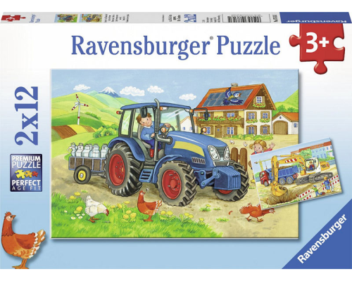 Ravensburger puzzel Op de bouwplaats en boerderij - Twee puzzels - 12 stukjes - kinderpuzzel