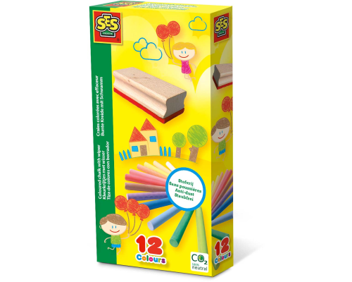 Met de krijtjes van SES maak je de mooiste tekeningen in alle kleuren van de regenboog. Een groot voordeel van deze bordkrijtjes is dat ze minder stof geven. Niet helemaal tevreden over je creatie? Met de bordenwisser haal je het makkelijk weer weg en kan