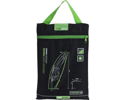 Deze afdekhoes voor een hang parasol heeft een zwarte kleur en is gemaakt van duurzaam en sterk materiaal. De afdekhoes is zonbestendig en waterproof, ideaal om jouw parasol droog en netjes op te bergen.