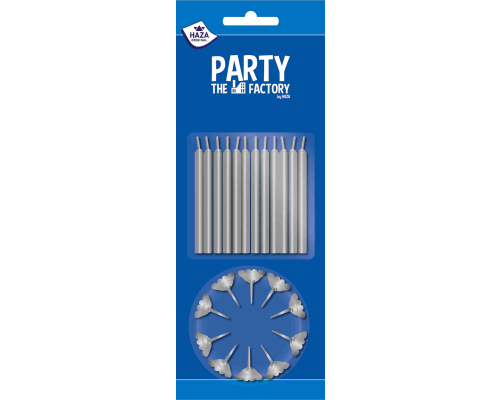 Taartkaarsjes 12 stuks + 12 houders zilver