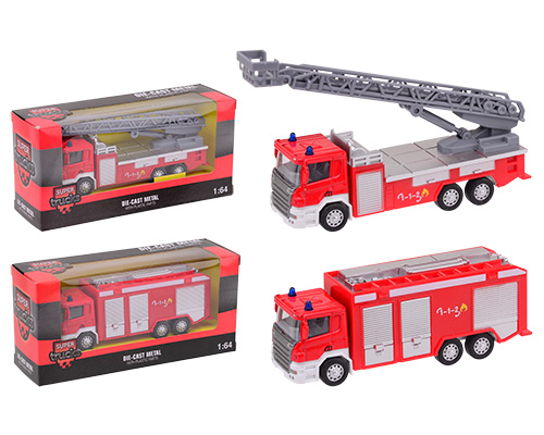 Super Cars 1:64 pull-back Brandweerauto 2 assorti