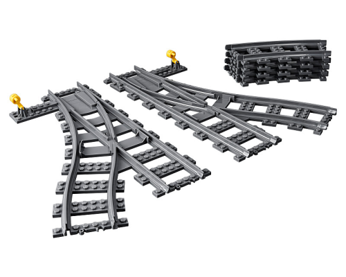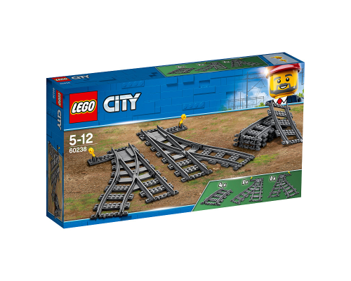 Maak je spoorweg nog langer met de LEGO City 60238 Wissels! Voeg de gebogen rails en wissels toe aan je set, zet de passagiers of de vracht in de trein en begin aan een spannende reis door LEGO City!