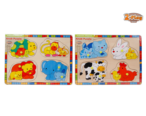 2-Play Knopjespuzzel hout 8 stukjes dier mama/kind 2ass.