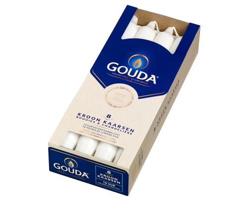 Gouda kroonkaars 240/24 doos 8 satijn wit