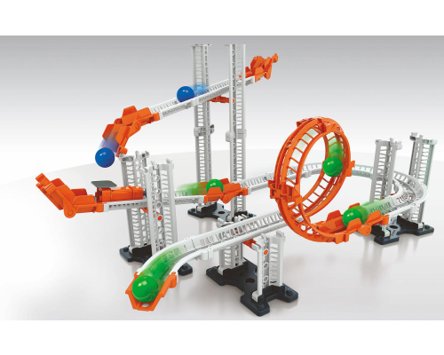 Een werkelijk unieke wetenschappelijke set om de basisbeginneselen van natuurkunde op een leuke en eenvoudige manier te ontdekken! Gebruik de starter om knikkers de baan in te schieten en trotseer de wetten van de zwaartekracht met de loopings! De uitgeb