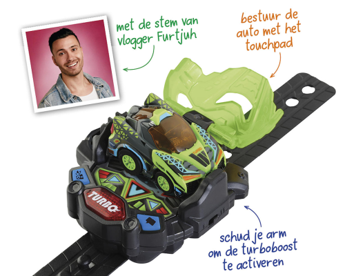 Word een stoere racer met je eigen Turbo Force Racers voertuig! Gebruik het touchpad om het voertuig op afstand te besturen. Plaats je racer op de polsband om deze op te laden en schud je arm om de turbo-boost te activeren. Druk vervolgens op de turbo-toe