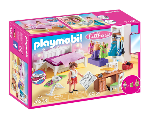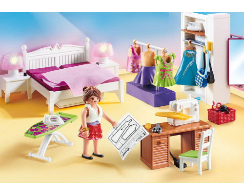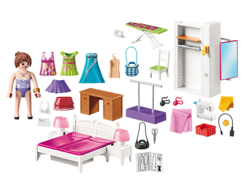 PLAYMOBIL 70208 Slaapkamer met mode ontwerphoek In de naairuimte worden prachtige jurken ontworpen en genaaid met de naaimachine. De bedlampjes werken.