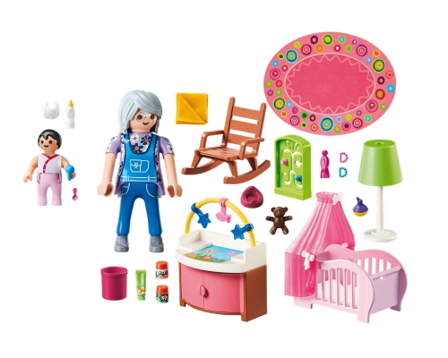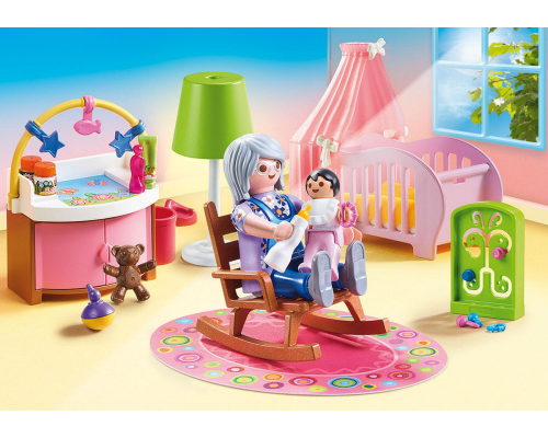PLAYMOBIL 70210 Babykamer met babybedje, luiertafel, vloerlamp, schommelstoel en vele accessoires.