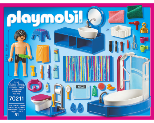 PLAYMOBIL 70211 Badkamer met ligbad Het badkamerkastje met manden biedt opbergruimte voor toiletspullen. Met rubberen eend, toiletbevestiging voor kinderen en andere accessoires.