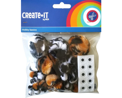 Create-It Pompoms animal mix + oogjes 75 stuks