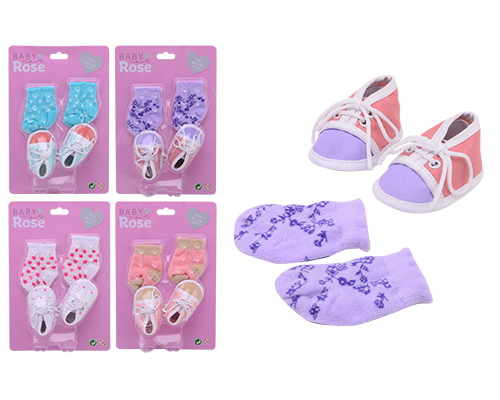 Baby Rose poppensokken en schoenen op kaart 4 ass