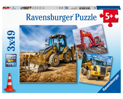 Puzzel 3x49 stukjes Bouwmachines aan het werk