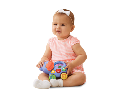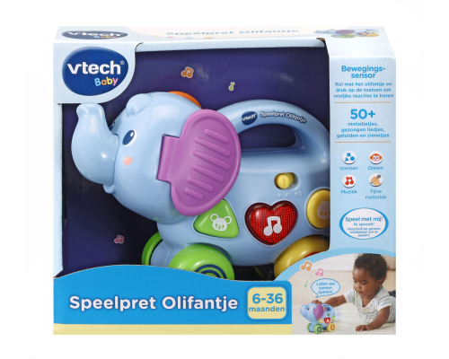 Luister naar grappige geluiden, vrolijke zinnetjes, gezongen liedjes en melodietjes. Maak spelenderwijs kennis met dieren en vormen. Het bewegen van de oren, de slurf en het drukken op de toetsen draagt bij aan de ontwikkeling van de fijne motoriek.