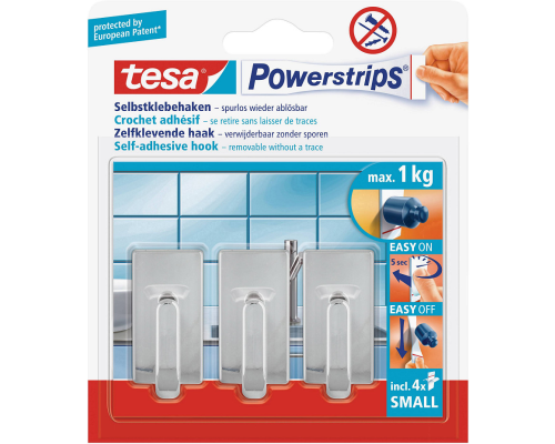 Tesa Powerstrips Small Classic - Chroom 3 stuks