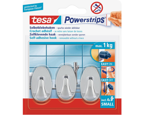 Tesa Powerstrips Small Ovaal - Chroom 3 stuks